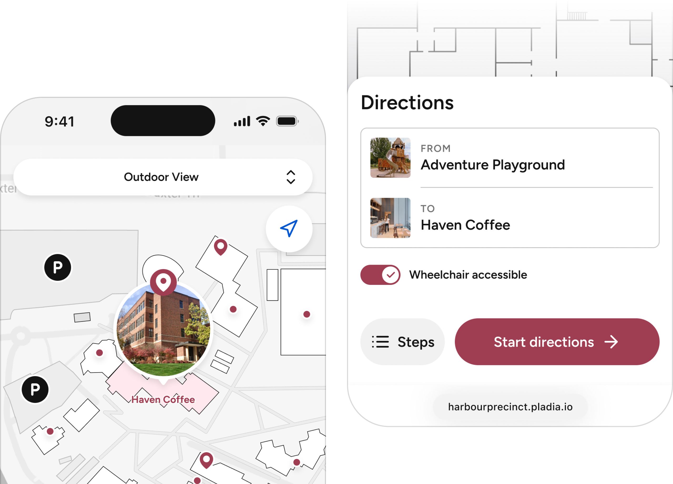 Pladia’s Pathways feature gives visitors clear, step-by-step directions using visible landmarks instead of GPS or beacons. Guests can confidently move between shops, cultural sites, playgrounds, and green spaces with estimated times and accessible routes available at every step.